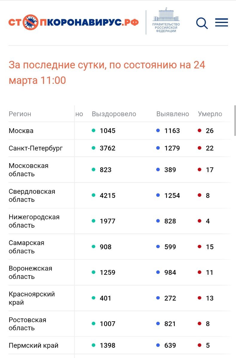 ? выписано в связи с выздоровлением 61 860 человек, на 7% меньше по сравнению с 24 марта