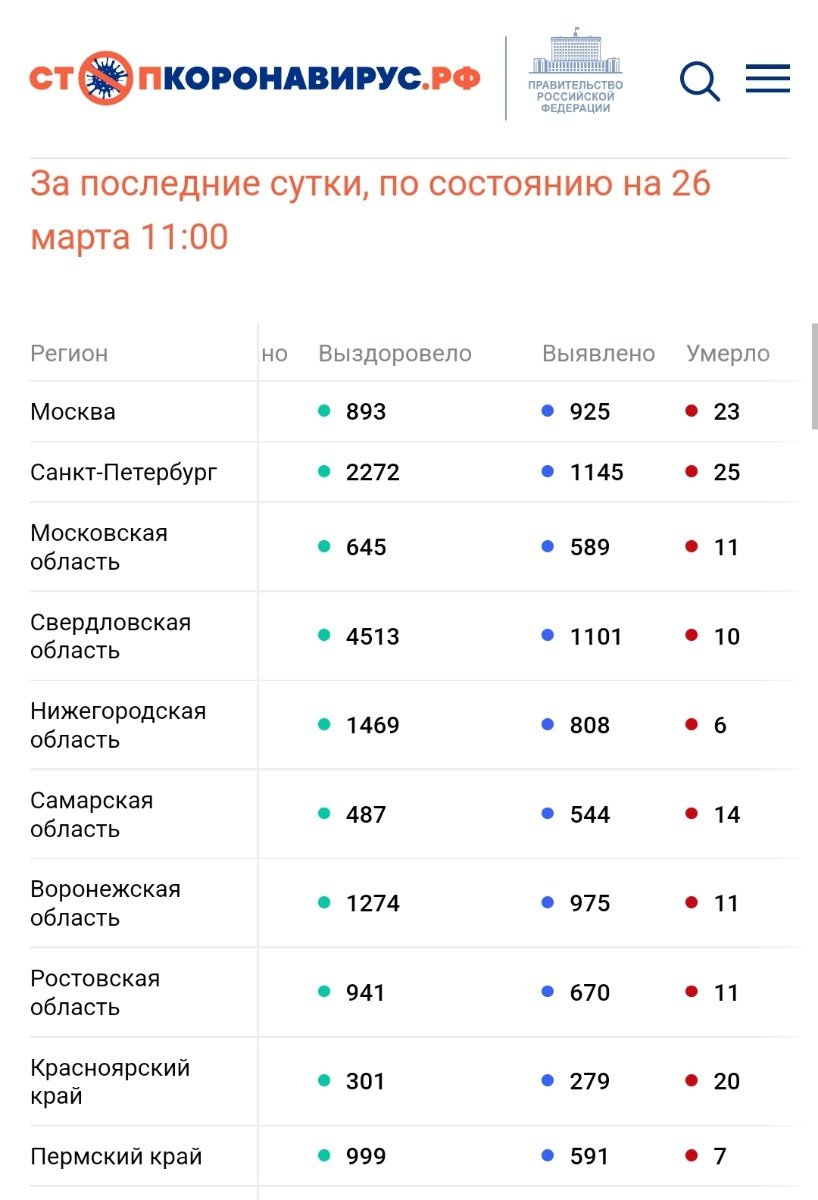 ? выписано в связи с выздоровлением 60 933 человека, на 1,5% меньше по сравнению с 25 марта