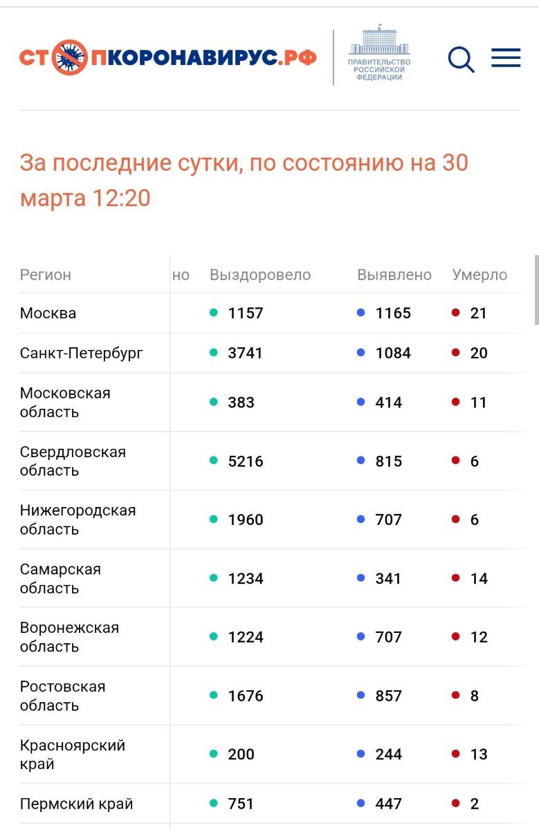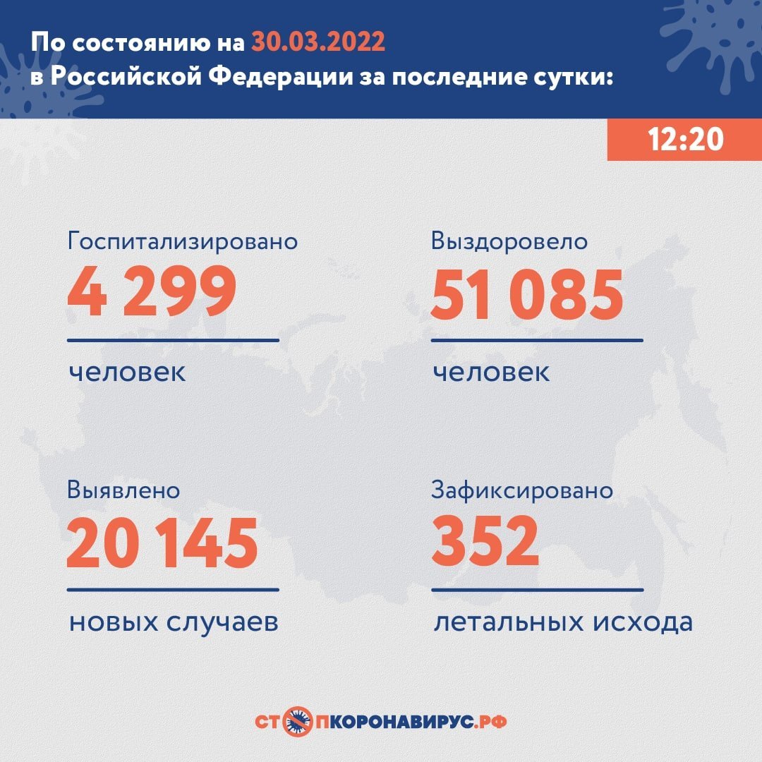 По состоянию на 1 апреля 2022 года в России за сутки: