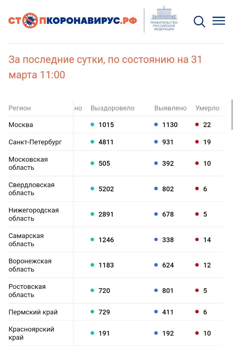 ? выписано в связи с выздоровлением 50 496 человек, на 1,2% меньше по сравнению с 30 марта
