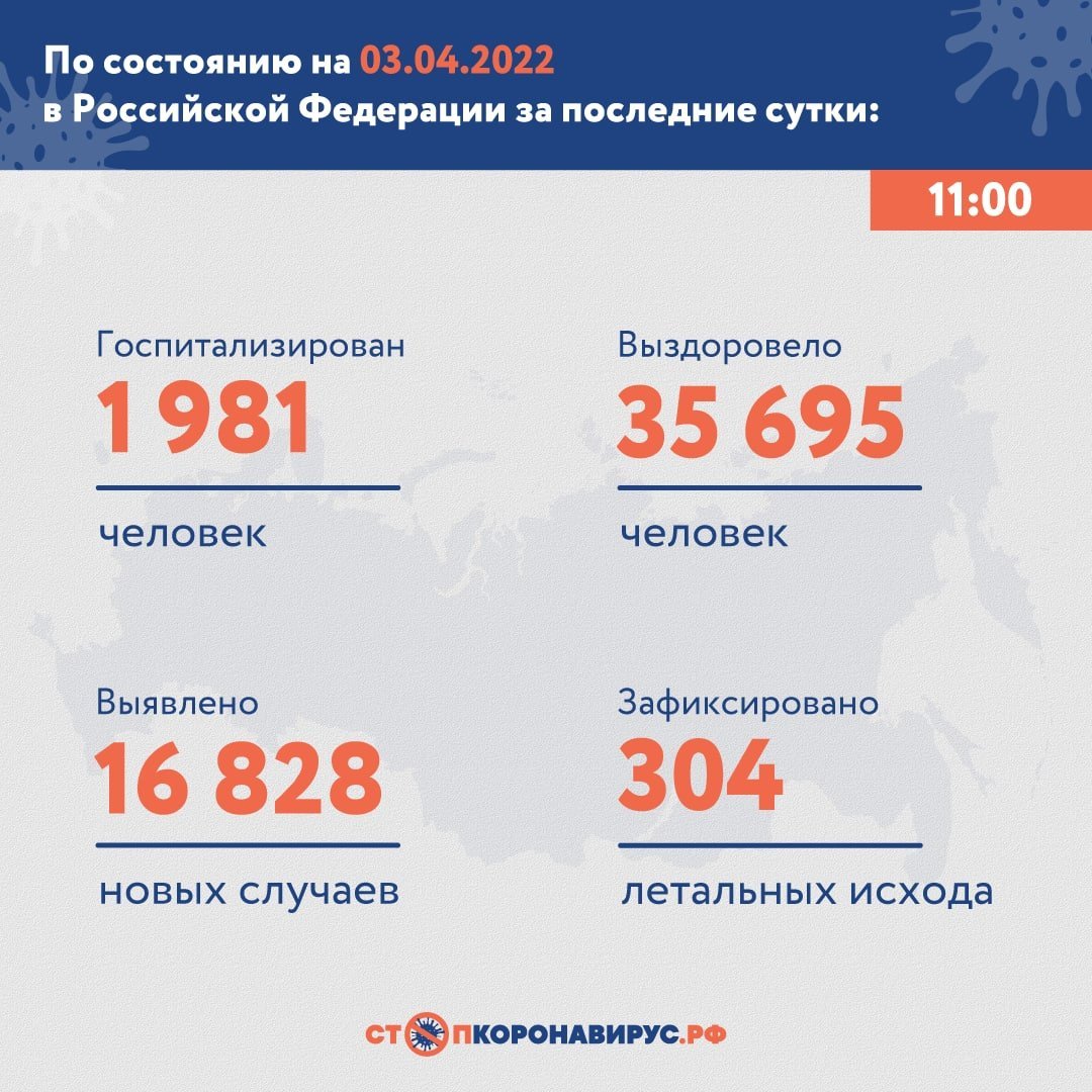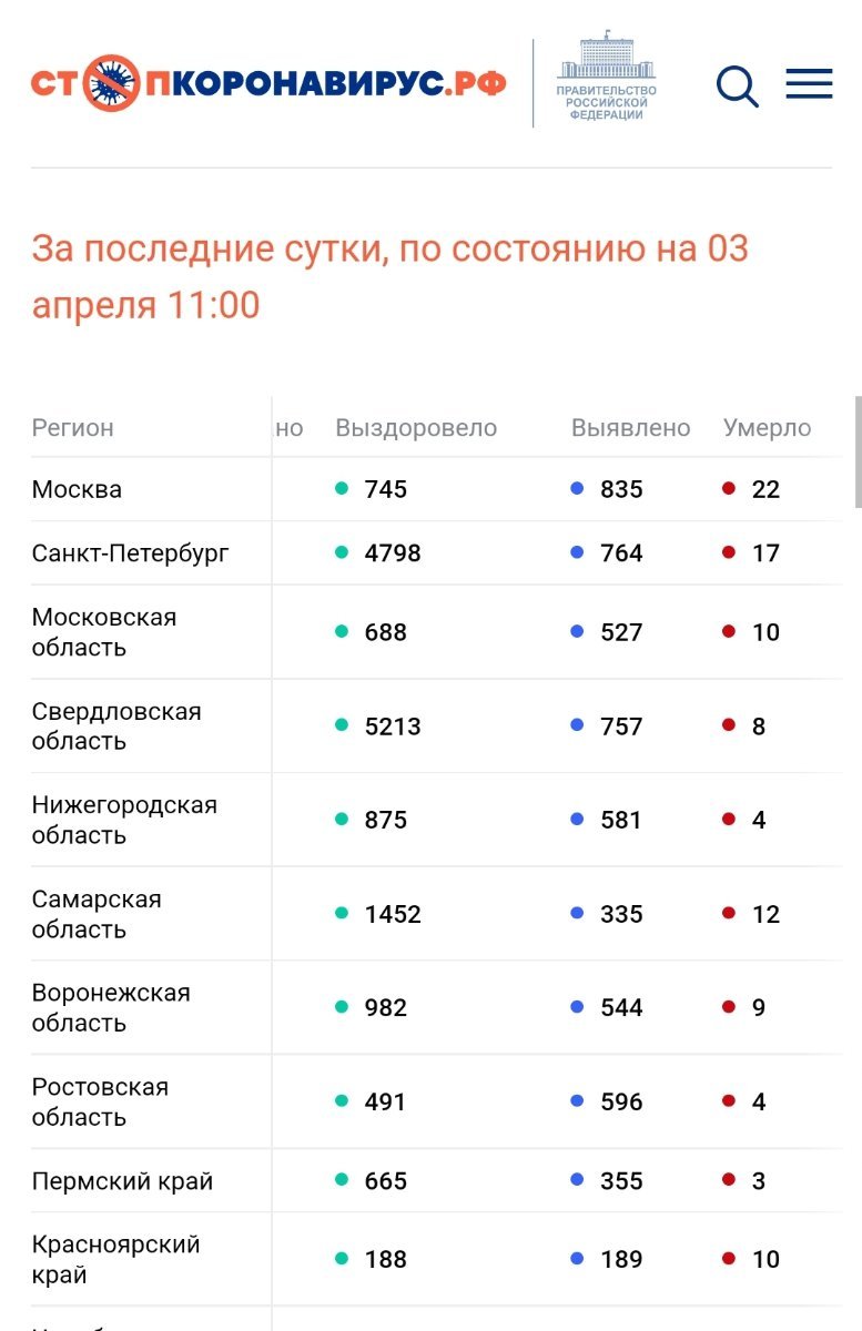 По состоянию на 3 апреля 2022 года в России за сутки: