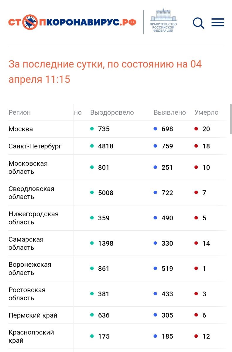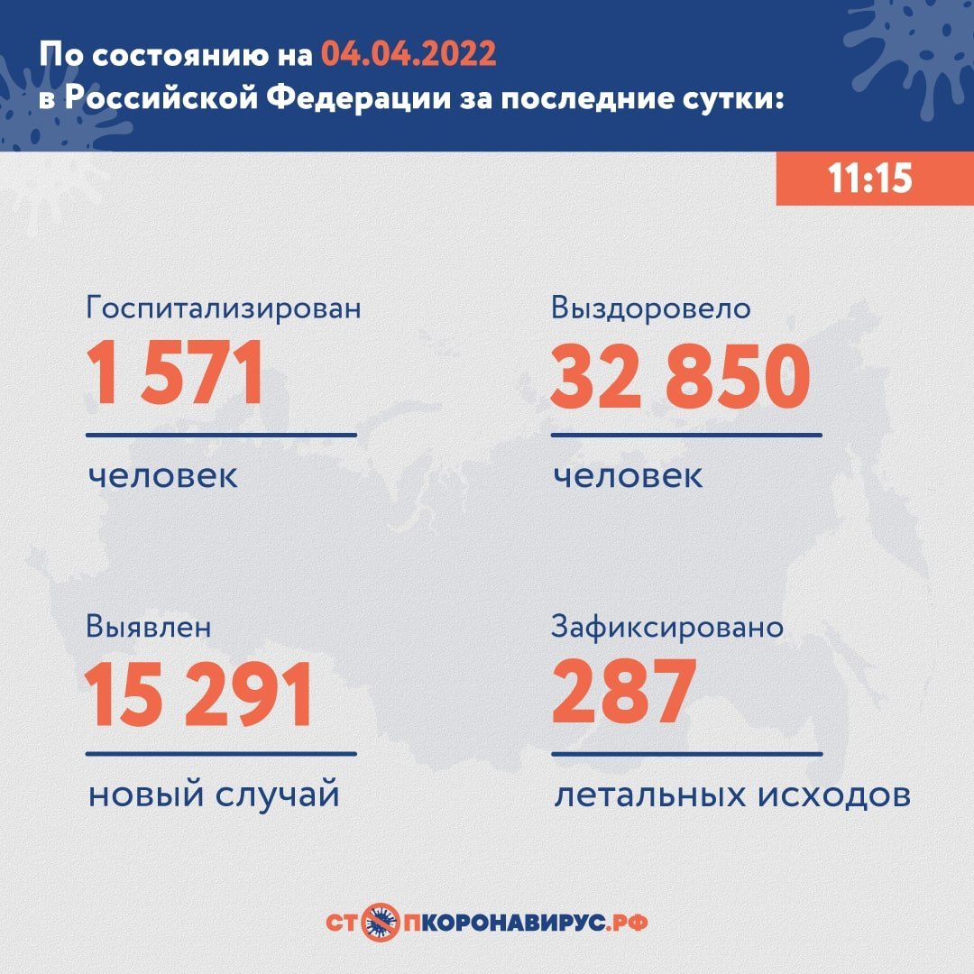 По состоянию на 4 апреля 2022 года в России за сутки: