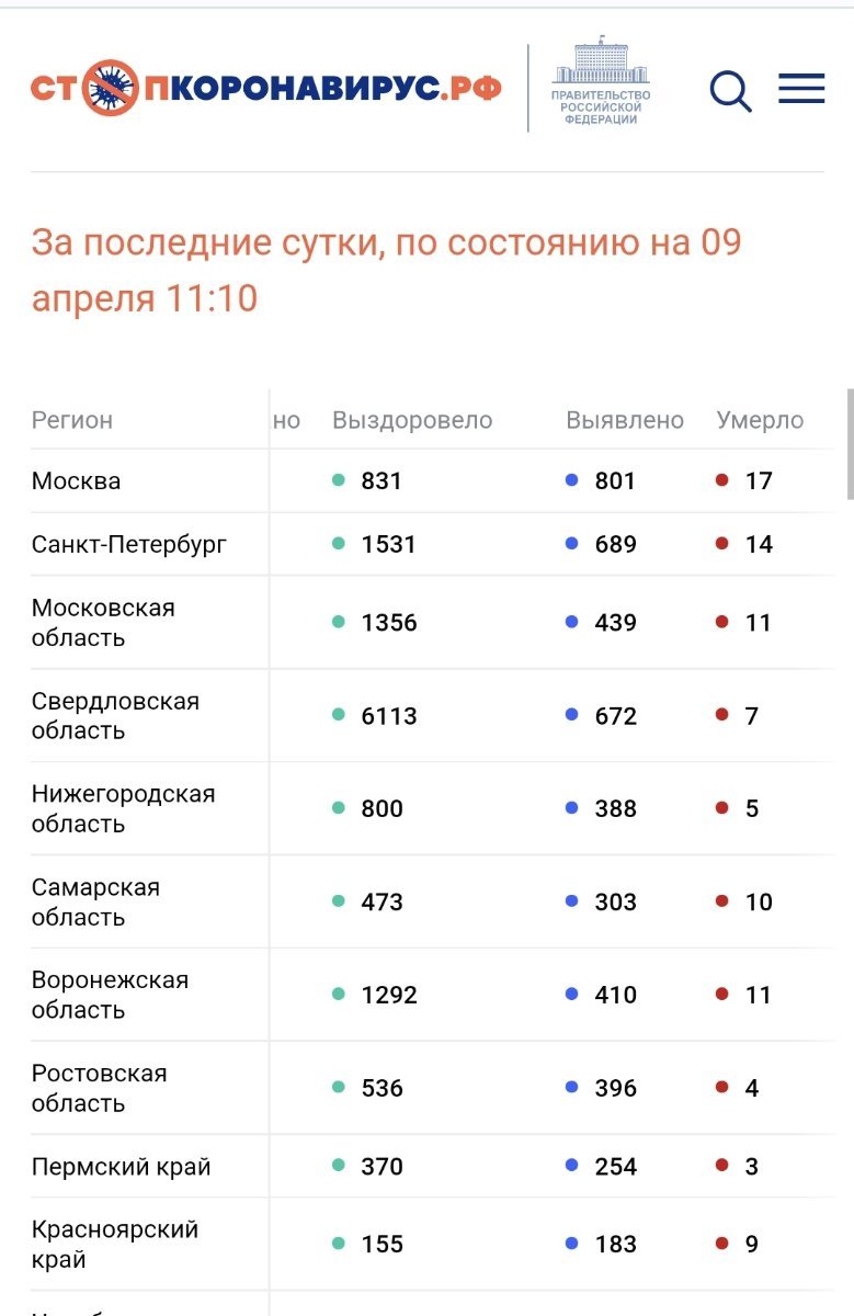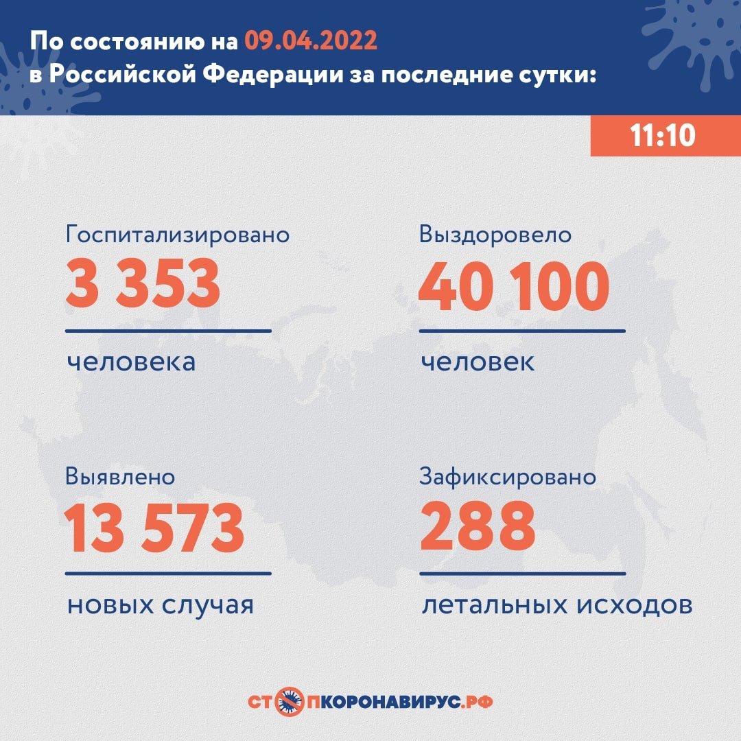 По состоянию на 9 апреля 2022 года в России за сутки:
