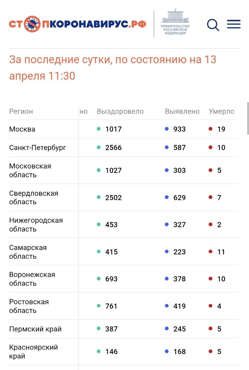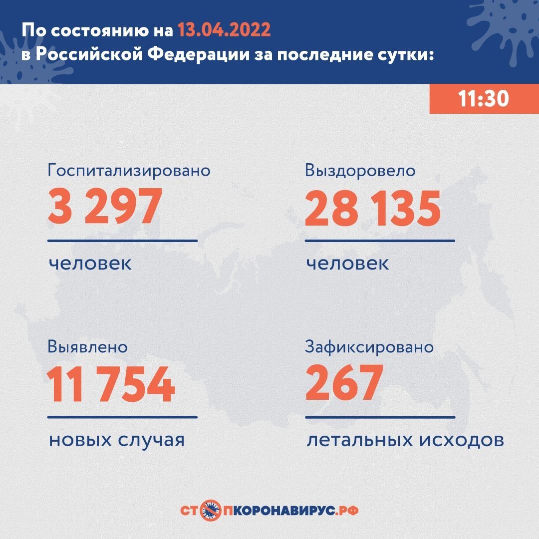 По состоянию на 13 апреля 2022 года в России за сутки: