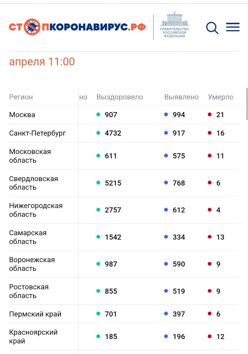 ? выписан в связи с выздоровлением 31 271 человек, на 16,88% больше по сравнению с 11 апреля