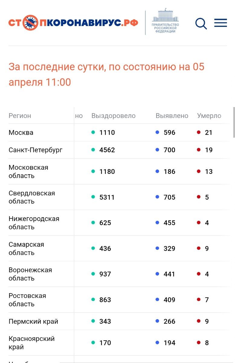 По состоянию на 5 апреля 2022 года в России за сутки: