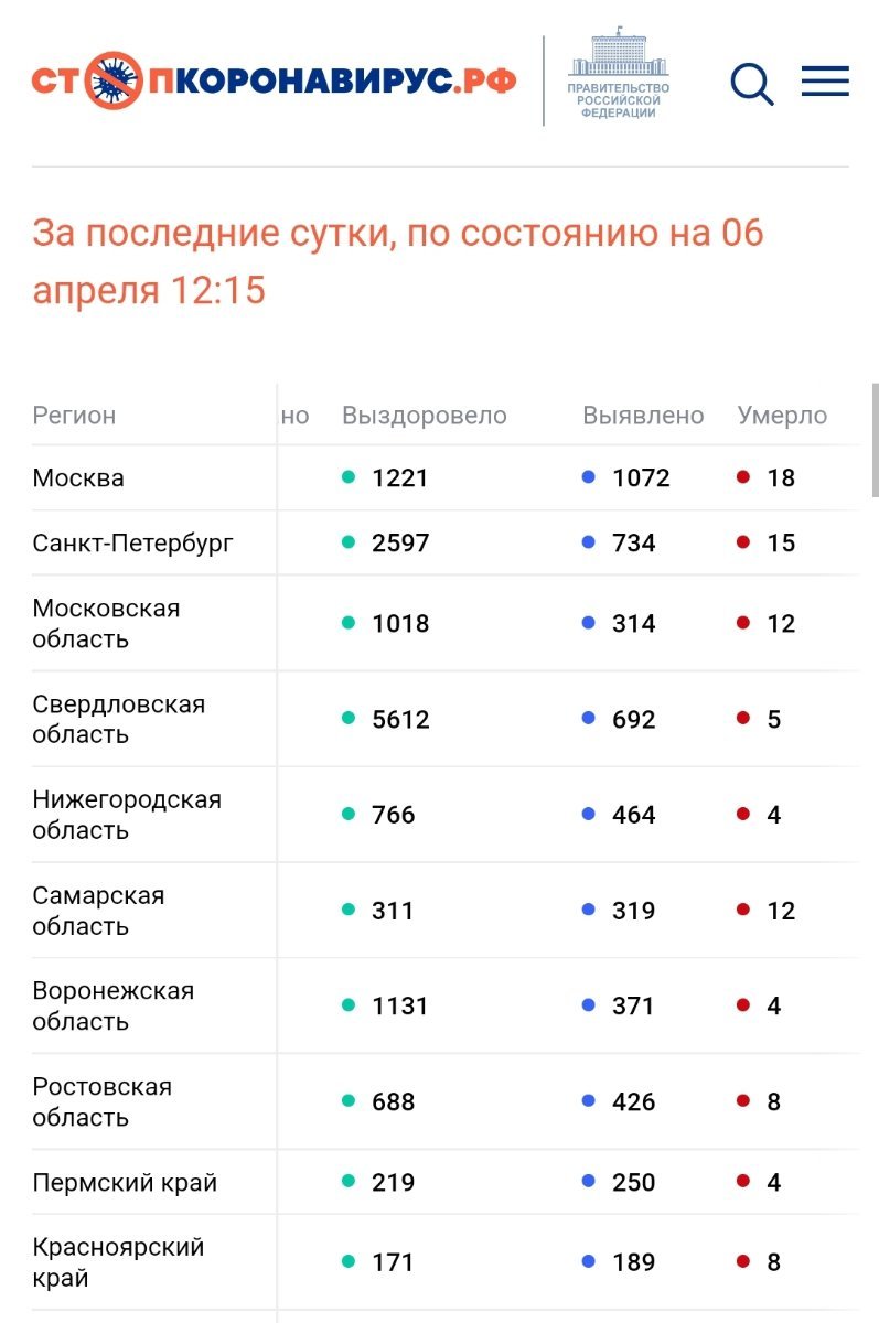 По состоянию на 6 апреля 2022 года в России за сутки: