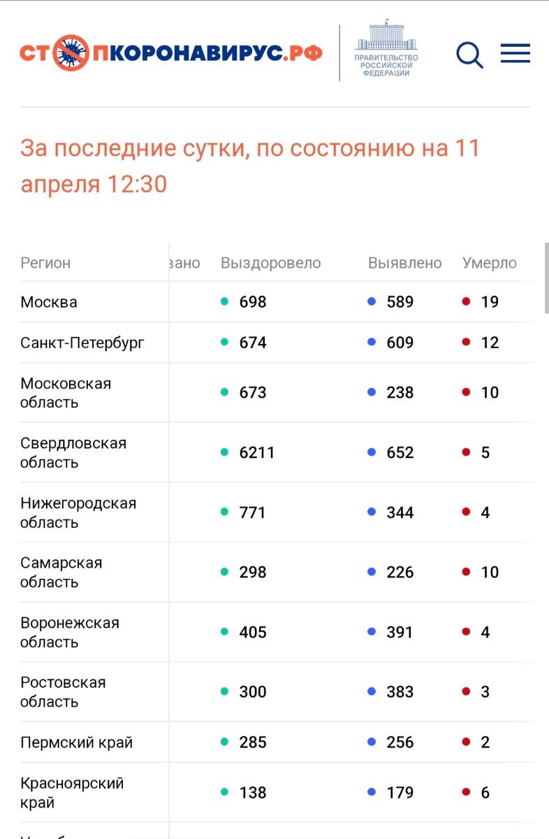 По состоянию на 11 апреля 2022 года в России за сутки: