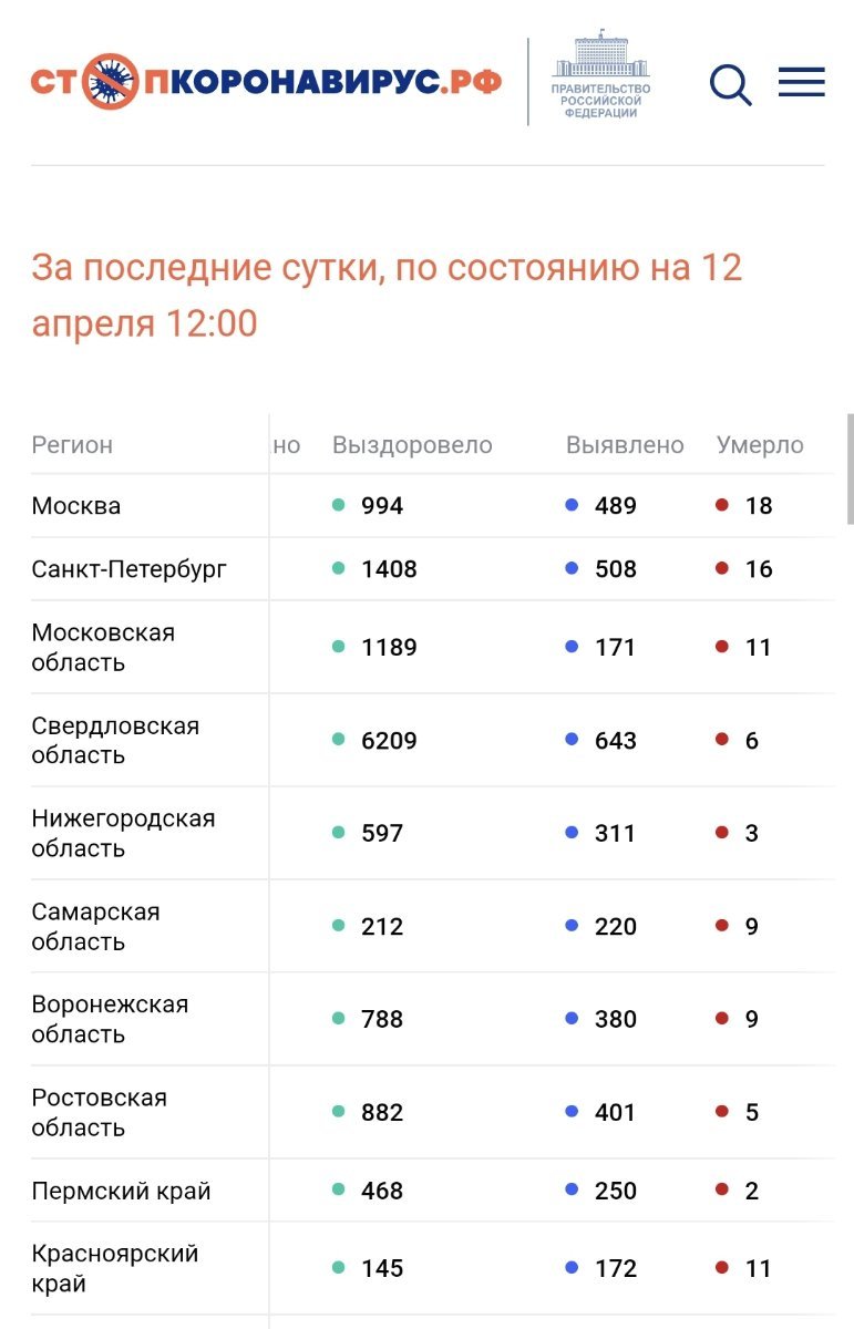 По состоянию на 12 апреля 2022 года в России за сутки:
