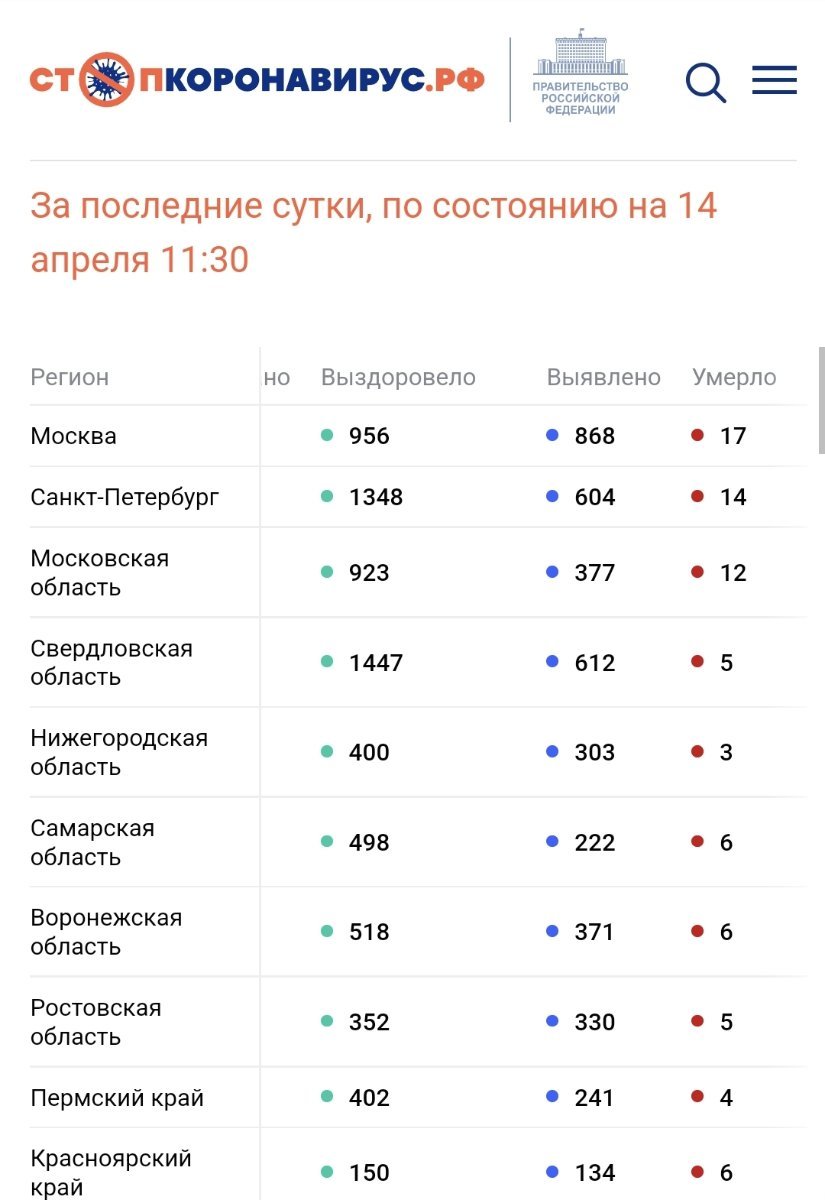 По состоянию на 14 апреля 2022 года в России за сутки: