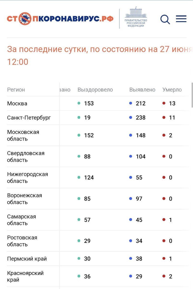 По состоянию на 27 июня 2022 года в России за сутки: