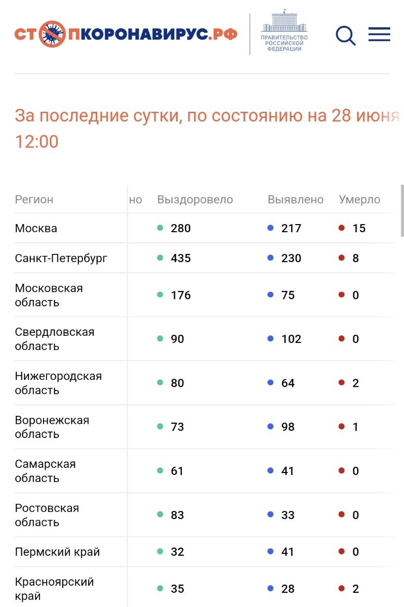 По состоянию на 28 июня 2022 года в России за сутки: