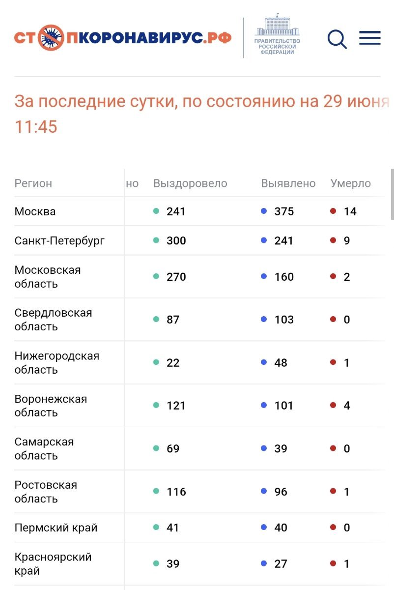 По состоянию на 29 июня 2022 года в России за сутки: