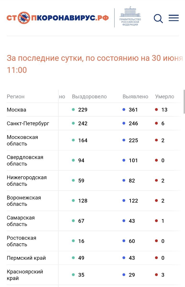 По состоянию на 30 июня 2022 года в России за сутки: