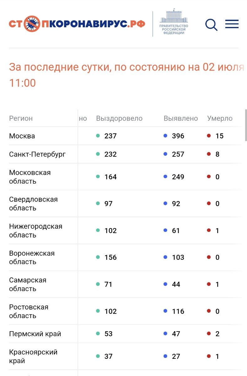 По состоянию на 2 июля 2022 года в России за сутки: