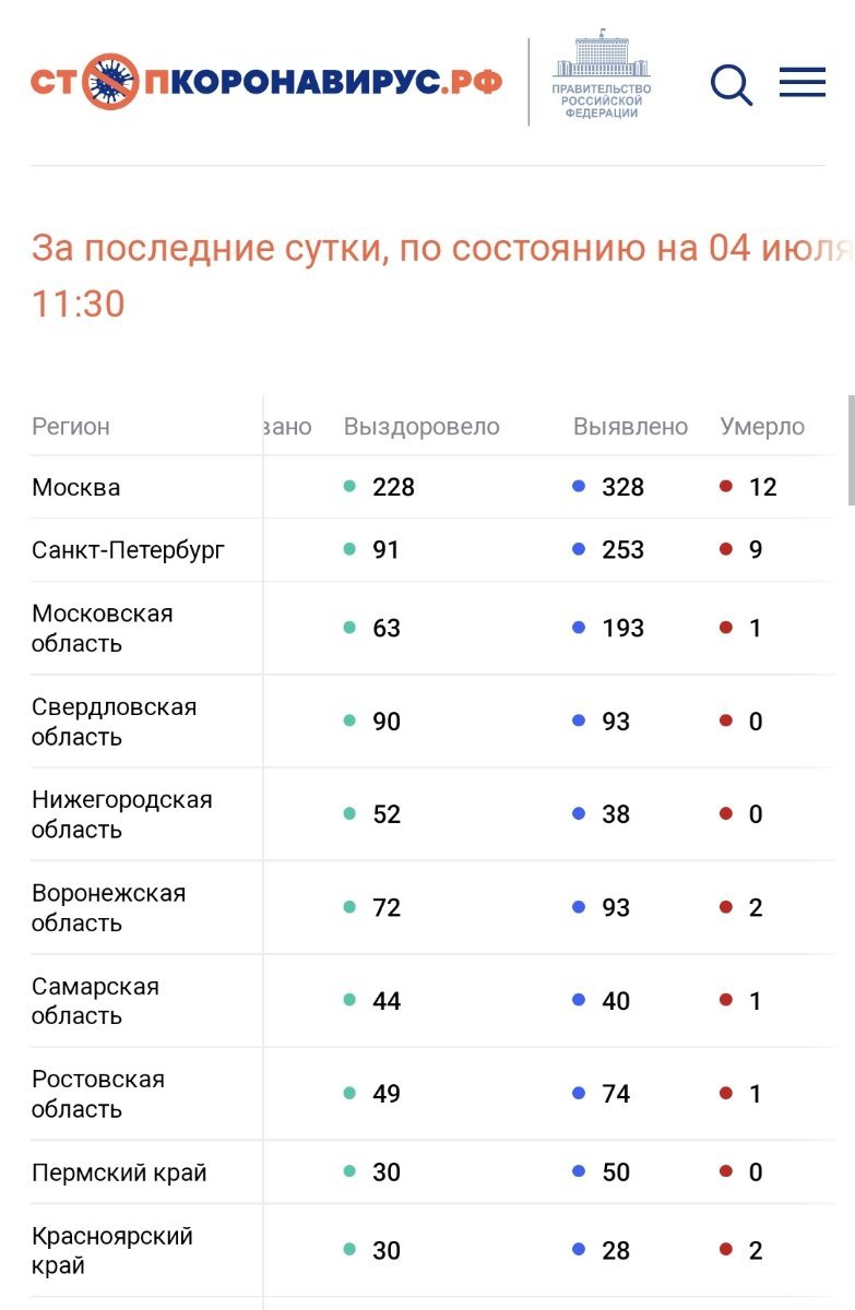 По состоянию на 4 июля 2022 года в России за сутки:
