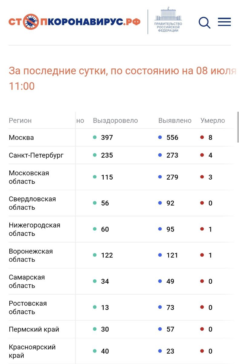 По состоянию на 8 июля 2022 года в России за сутки: