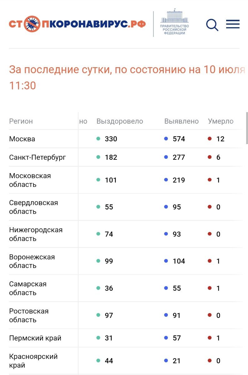 По состоянию на 10 июля 2022 года в России за сутки: