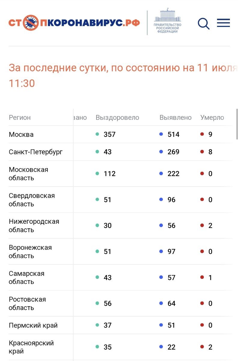 По состоянию на 11 июля 2022 года в России за сутки: