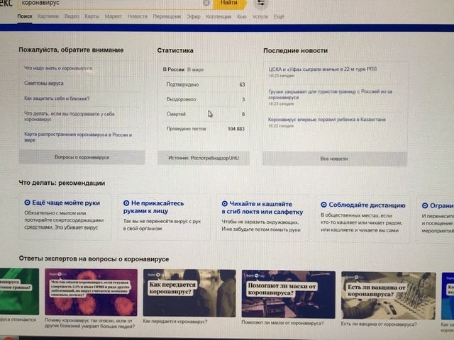 студентка на нашем факультете вернулась из Италии, попала под карантин, на фоне массовой истерии заболела моя студенточка, блин, я в волнениях. Пока врача не вызываем, надеемся, что банальная простуда. В МГУ студентка попала по возвращении из зоны неблагополучности с температурой в карантин, температура 37, ее переводили из одной больницы в другую, условия плохие, тараканы, к ней в палату 2-х местную подселили еще одну карантинку , но уже с температурой 39. А вдруг у первой простуда, а у второй вирус? Результатов нет, с родителями встречаться не разрешают, чо за хрень, помирать так вместе! В Ашанах, в Москве пустые полки( не во всех), сбербанк закрыл офисы, перевел ребят на дистанционку,  Но мне почему-то кажется, что что-то с поставками, не могут так все раскупить, хотя фиг его знает. В аптеках главный вопрос Маски есть? Антисептики есть? Пока все спокойны, маски закончились насегодня, предлагаю людЯм шить самим, отказываются
