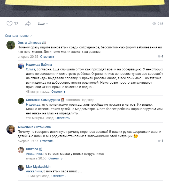 Maria Grigoreva Опубликовано 10 августа, 2020 Опубликовано 10 августа, 2020 4 минуты назад, Лерика" сказал(а) : за вожатых, там только одна мамочка разговоры вела, но тут пишут, что подтерли ее комментарии. Не одна. Под тем сообщением и другие писали, что у вожатых нашли ковид, а дружба не отрицала. И в комментарии к сообщению от 8 августа есть скрин, где дружба пишет, что пришли сомнительные анализы у вожатых (мазки). Родители хотят знать, причину переноса заезда. И это нормально, мне кажется.