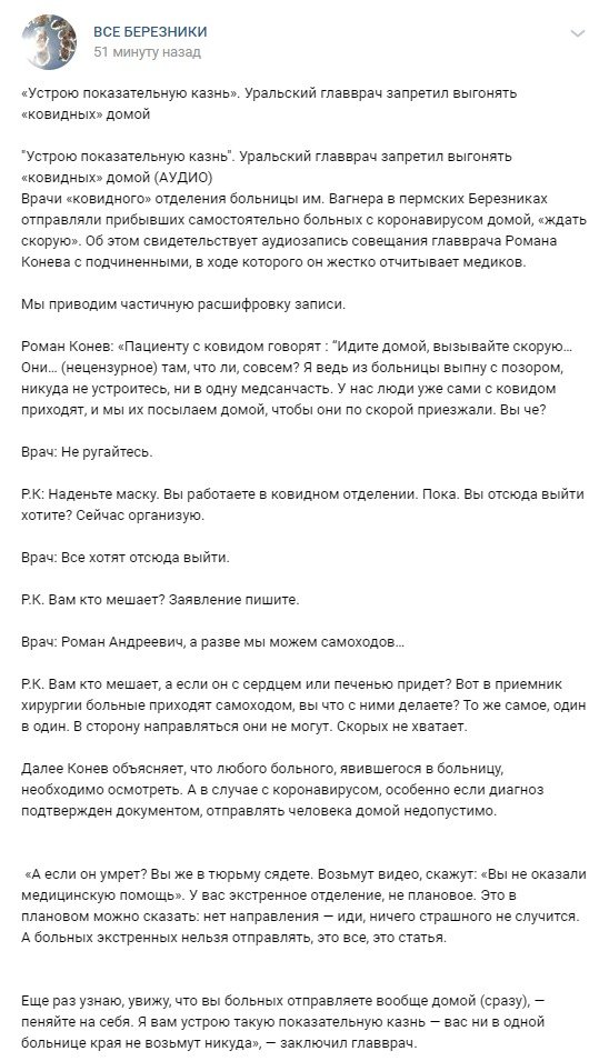 Лерика" Опубликовано 16 октября, 2020 Опубликовано 16 октября, 2020 39 минут назад, Крендель сказал(а) : А чё позёрство? Он им и распедаливает как раз алгоритм, что прежде чем человека разворачивать из больницы, надо его осмотреть, померять сатурацию и тд. У Ромы и так судов за пол-года херова туча, ему садиться неохота из-за раздолбаев в приёмном покое. алгоритм - порядок действий, прописанный документом. даже рабочий раствор для поверхностей расписывают. а тут сегодня одно сказал, завтра сказал - другое, а в суде от слов отказался, крайний врач.