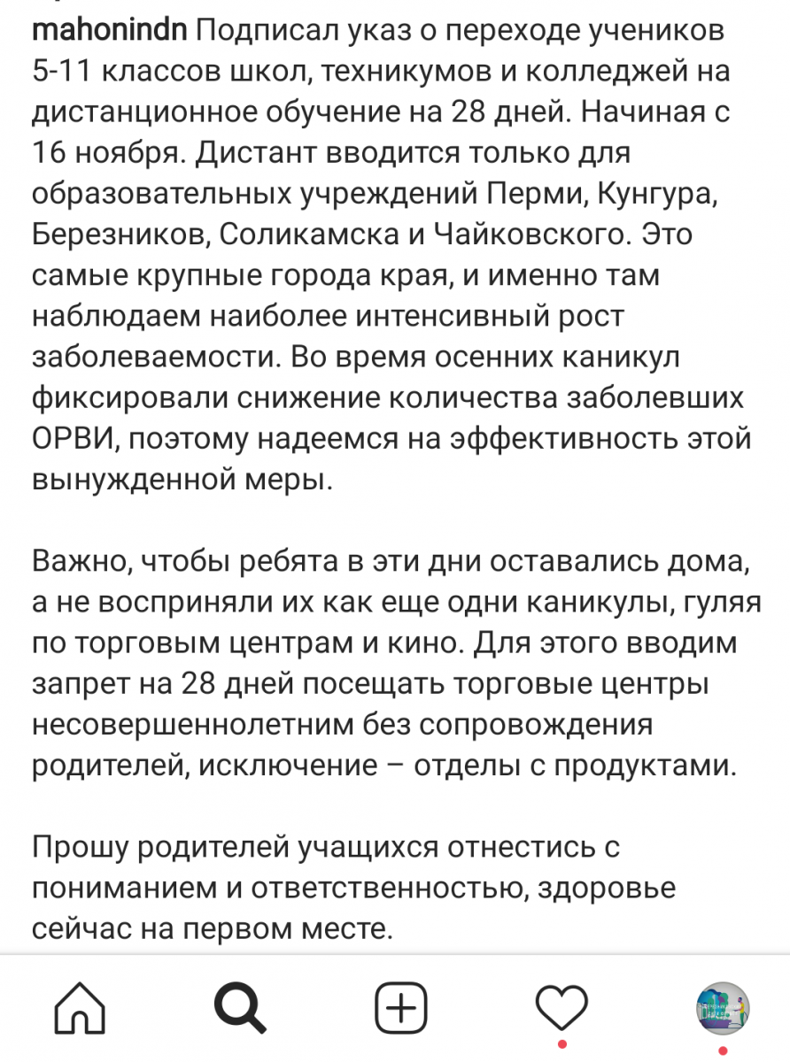 natka Опубликовано 13 ноября, 2020 Опубликовано 13 ноября, 2020 КОРОНАВИРУС | ПЕРМСКИЙ КРАЙ | ОФИЦИАЛЬНАЯ ИНФОРМАЦИЯ В Пермском крае на 10 часов утра 13 ноября за последние сутки: Всего 15 755 подтверждённых случаев заболевания коронавирусной инфекцией, 10 716 человек выздоровели, 3582 человека изолированы на дому по предписанию главного санитарного врача. За сутки в лабораториях Пермского края проведено 9139 исследований на коронавирусную инфекцию. Всего проходят лечение 5254 человека (4281 человек с коронавирусом, а также 973 пациента с ОРВИ, пневмонией, по ним ожидается подтверждение на COVID-19).