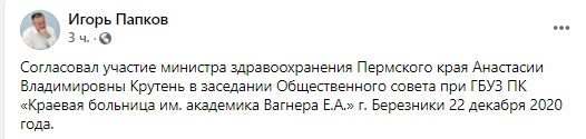 Крендель Опубликовано 15 декабря, 2020 Опубликовано 15 декабря, 2020 1 час назад, jimm031 сказал(а) : Из замминистра обратно в главврачи. Михаил Суханов возглавил пермскую больницу имени Тверье Замглавы Минздрава Михаил Суханов возглавил больницу имени Тверье В городской клинической больнице имени Тверье сменился руководитель. С сегодняшнего дня пост главврача будет занимать бывший замминистра здравоохранения Михаил Суханов. До него больницу два года возглавлял Валерия Блинов. Пресс-служба больницы имени Тверье объявила о назначении нового руководителя. До этого с октября 2019 года Суханов занимал пост заместителя министра, на него он пришел после руководства березниковской больницей им. Вагнера. Михаил Суханов — сын известного кардиохирурга Сергея Суханова. В 2004 году он окончил ПГМА по специальности «лечебное дело», далее — интернатуру по хирургии в институте сердца. В 2006 году ездил в резидентуру в Израиль по сердечно-сосудистой хирургии, стажировался по кардиохирургии и трансплантологии в Швейцарии и США. С 2017-го по 2019-й Суханов возглавлял березниковскую больницу имени Вагнера, а затем его назначили на пост замминистра здравоохранения Пермского края. Ранее больницу имени Тверье возглавлял Валерий Блинов. Его контракт закончился 13 октября, но продлевать его не стали. Коллектив больницы просил продлить контракт с Блиновым и заявил, что им нравится работать под его руководством. «Весь период работы отделения для лечения пациентов с COVID-19 Валерий Аркадьевич без выходных и праздничных дней, круглосуточно лично решал все сложные организационные и кадровые вопросы отделения», — писали медики. — Он классный специалист, но был неудобен руководству — говорил всё прямо. Наверное, поэтому с ним не стали продлевать контракт, — поделился мнением с 59.RU медицинский источник. До вступления в должность Михаила Суханова больницу возглавляла заместитель главврача Флёра Гилева. Недавно кадровые перестановки произошли и в правительстве. Теперь краевым Минздравом управляет Анастасия Крутень, бывшая главврач больницы имени Гринберга. Ранее она уже работала министром. https://59.ru/text/health/2020/12/15/69629161/ Вот и коневская крыша в минздраве съехала.