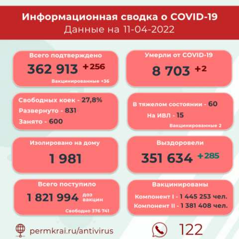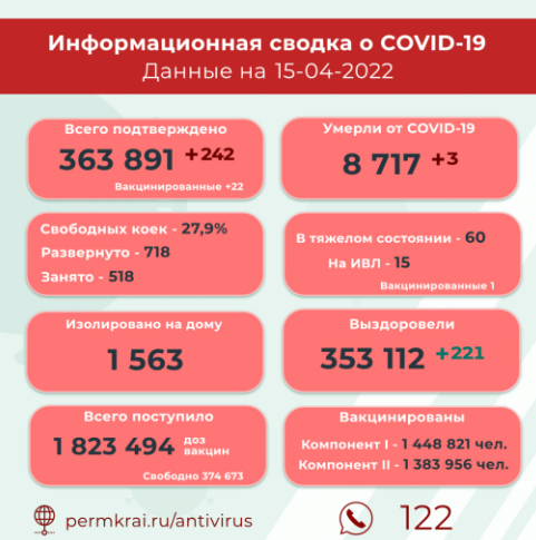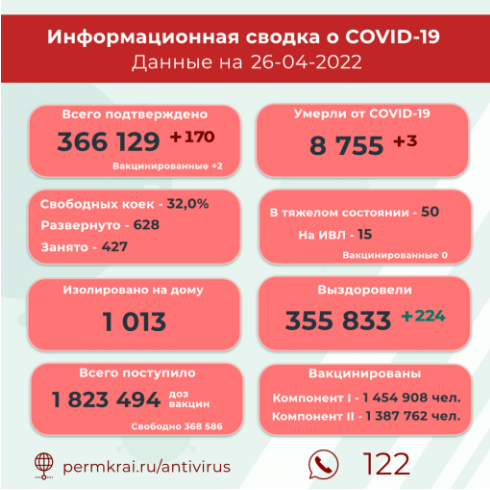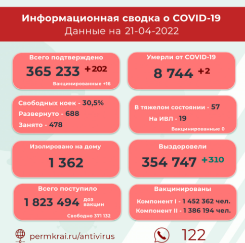 natka Опубликовано 13 апреля, 2022 Опубликовано 13 апреля, 2022 в тяжёлом -9 ивл -2 занято -17 v1 +979 привезли 1500 доз вакцины)
