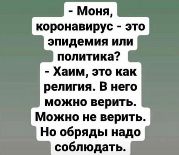 Дядя Вова Опубликовано 20 мая, 2020 Опубликовано 20 мая, 2020 6 минут назад, Дядя Вова сказал(а) : http://izbrannoe.com/news/mysli/mikhail-zhvanetskiy-boyatsya-ne-nado-/Михаил Жванецкий «Бояться не надо!» 14.04.2020 Михаил Жванецкий. «Турникеты» 718 68 Добавить в избранное 17153 В конце каждой улицы поставить турникеты. Конечно, можно ходить и так, и на здоровье, но это бесшабашность — куда хочу, туда и хожу. В конце каждой улицы поставить турникеты. Да просто так. Пусть пока пропускают. Не надо пугаться. Только треском дают знать. И дежурные в повязках. Пусть стоят и пока пропускают. Уже само их присутствие, сам взгляд... Идешь на них — лицо горит, после них — спина горит. И они ничего не спрашивают... пока. В этом весь эффект. И уже дисциплинирует. В любой момент можно перекрыть. Специальные команды имеют доступ к любому дому и так далее. 4
