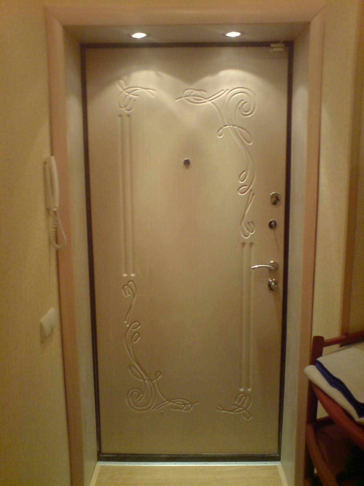 val58 Опубликовано 3 октября, 2010 Автор Опубликовано 3 октября, 2010 Тож заказали Иошкар-олу, но стандартную на 990. Обошлась в 13 т.р. Установка 3. Сегодня ставить будут, отпишу что и как. Ставит "Лунный свет". Ну вот, двери установлены. Модель "Аристократ". Немного маловат размерчик конечно, зазоры не совсем идеальны. Дверь 900 с чем-то, проём 1040 был. С одной стороны великоват зазорчик получился, но ничего, брусками заложили, запенили, вроде держится крепко. Но старая дверь "сидела" лучше, сами ставили, на совесть, на века. Еле выкорчевали, а уж вниз вчетвером тащили... Немаловажный факт: отделка в стоимость установки не входит, оплачивается отдельно, стоит 2к. Вопщем вот так мне поставили двери... Их главарь, который приезжал на замеры говорил, что будем подрезать на пару сантиметров наличник, а тут аж 10 сантиметров пены получилось. И монтажники, видя что дверь явно мала по размеру, таки воткнули её. Завтра встреча с начальством и выяснение ситуации. Но дверь с..ка красивая. :lol: По всей видимости что у фирмы было, то и воткнули...промониторил ситуацию по городу.двери ставят те кто устанавливает и окна...на все руки от скуки...каждый обсирает попутно фирму конкурентов и их двери-типа у тех остальных КИТАЙ а у них не двери а канфетка....вобщем все как обычно...даж скучно...МИР спасибо за инфу
