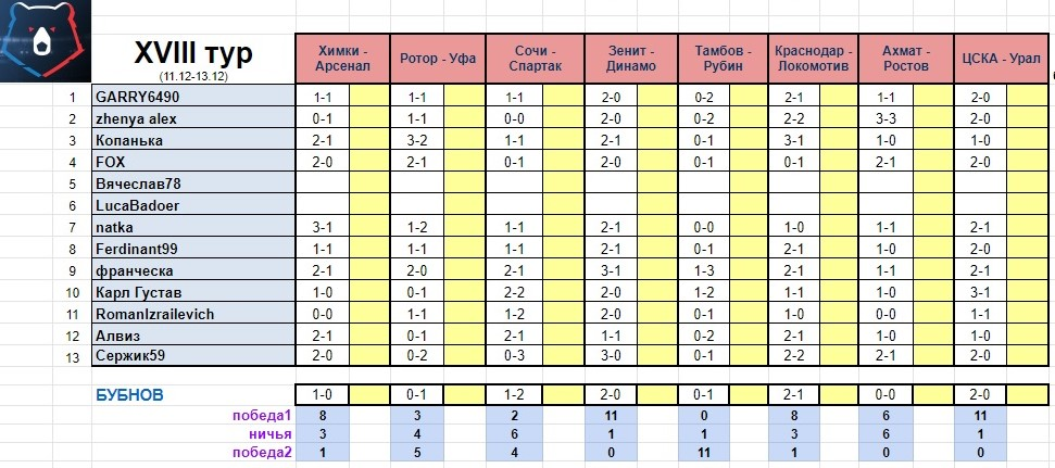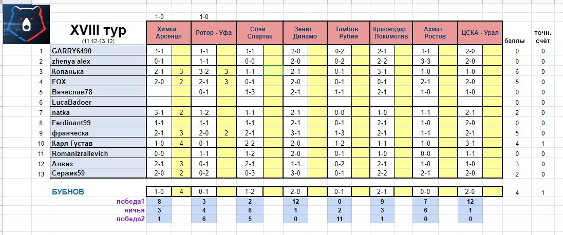 и шустренько делаем прогнозы на 19 тур, начало которого в среду 16 декабря в 20.00!