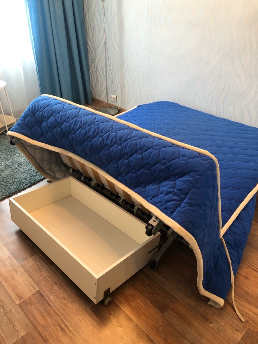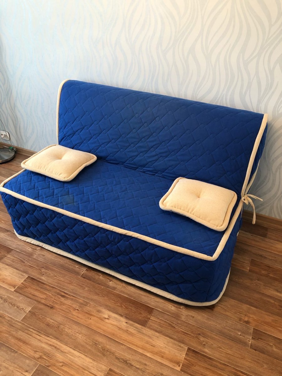 _Polly_ Опубликовано 30 июля, 2020 Опубликовано 30 июля, 2020 Размер спальной зоны: 140*190 Чехол синий съемный, матрас на липучках прикрепляется к каркасу, основание ортопедическое. Размер ящика: 18*49*88. Механизм дивана: аккордеон 10 000₽
