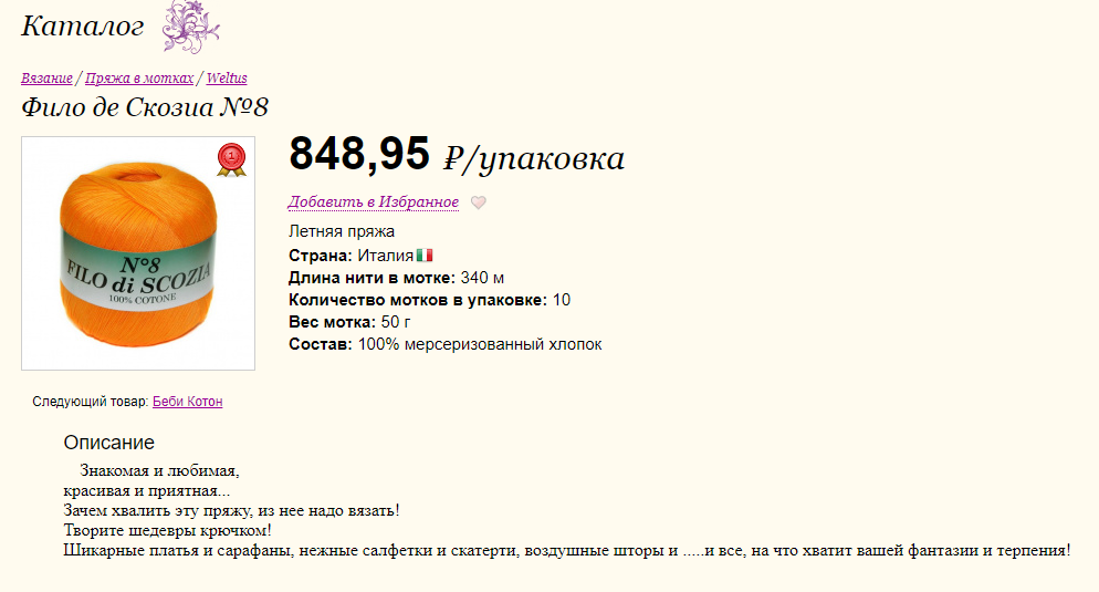 Ванесса Опубликовано 3 мая, 2021 Опубликовано 3 мая, 2021 19 часов назад, Dewolt сказал(а) : сейчас поищу как посмотреть, раньше без регистрации цены было видно посмотрела https://firma-rukodelie.ru/ без регистрации цены вижу, может на некоторые товары цены нет? напишите пожалуйста ссылку - посмотрю В частности интересует https://firma-rukodelie.ru/catalog/item/filo-de-skozia-8 и https://firma-rukodelie.ru/catalog/item/anna-16