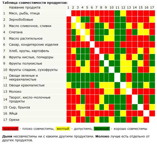 Master Yoda Опубликовано 9 октября, 2010 Опубликовано 9 октября, 2010 Кратко расскажу в чем смысл, если кто не знает. Есть три группы продуктов: Белки, Углеводы и нейтральные продукты. Белки сочетаются с нейтральными продуктами, Углеводы сочетаются с нейтральными продуктами, Белки и углеводы не сочетаются. Белки: Мясо, птица, дичь; Рыба и морепродукты; Яйцо; Молоко, сыр жирностью <50%; Фрукты (все кроме бананов); Углеводы: Рис, греча, фасоль, пшеница и т.д; Мучные изделия (хлеб, макароны, выпечка и т.д); Картофель; Мед, сахар, шоколад, варенье; Сухофрукты (курага, изюм, чернослив и т.д); Бананы; Нейтральные: Капуста (все виды); Стручковая фасоль; Лук; Сметана; Масло (оливковое, сливочное, подсолнечное); Орехи; Грибы; Творог; Сыр жироностью >50%; Овощи (кроме картофеля); Листья салата; Чё то вы путаете: Фрукты-это растительность с содержанием углеводов Сметана, творог, сыр-чисто белковые продукты Фасоль(и все бобовые)- растительный белок. Можно если только с маслом, больше не с чем не сочетается. С картошкой нормально пойдёт, меньше картошки влезет. МАВ вы из какой книжки незадумываясь всё это передрали?