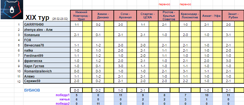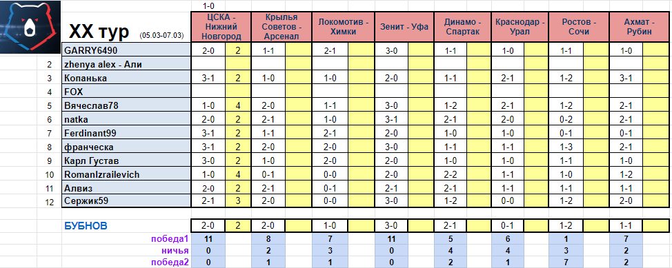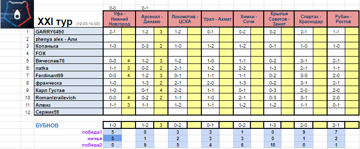 21 тур стартует 12 марта! прогноз уже открыт)