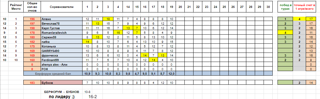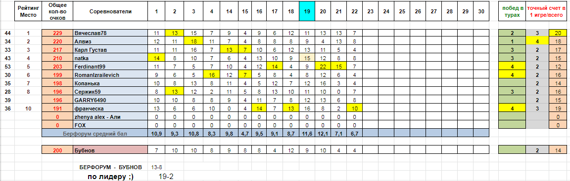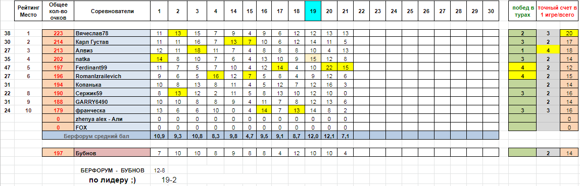 20 тур сыгран полностью! и феноменальная победа за Ferdinant99!!! Шикарный результат!