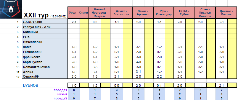 22 тур стартует 19 марта, прогноз открыт! не откладывайте не потом))