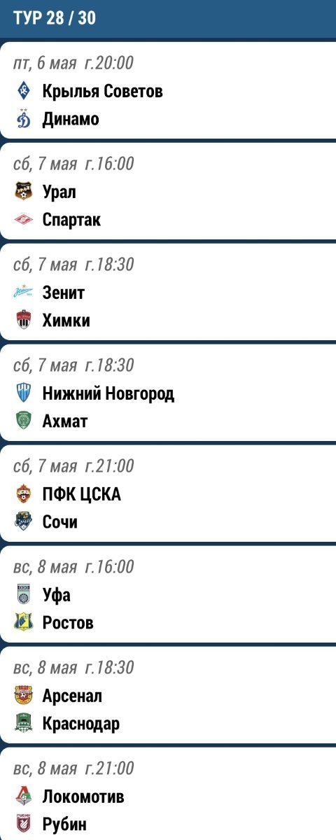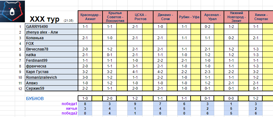30 тур в один день 21 мая!!! не опаздывайте с прогнозами, лучше до 12 субботы, потом я буду занята ?