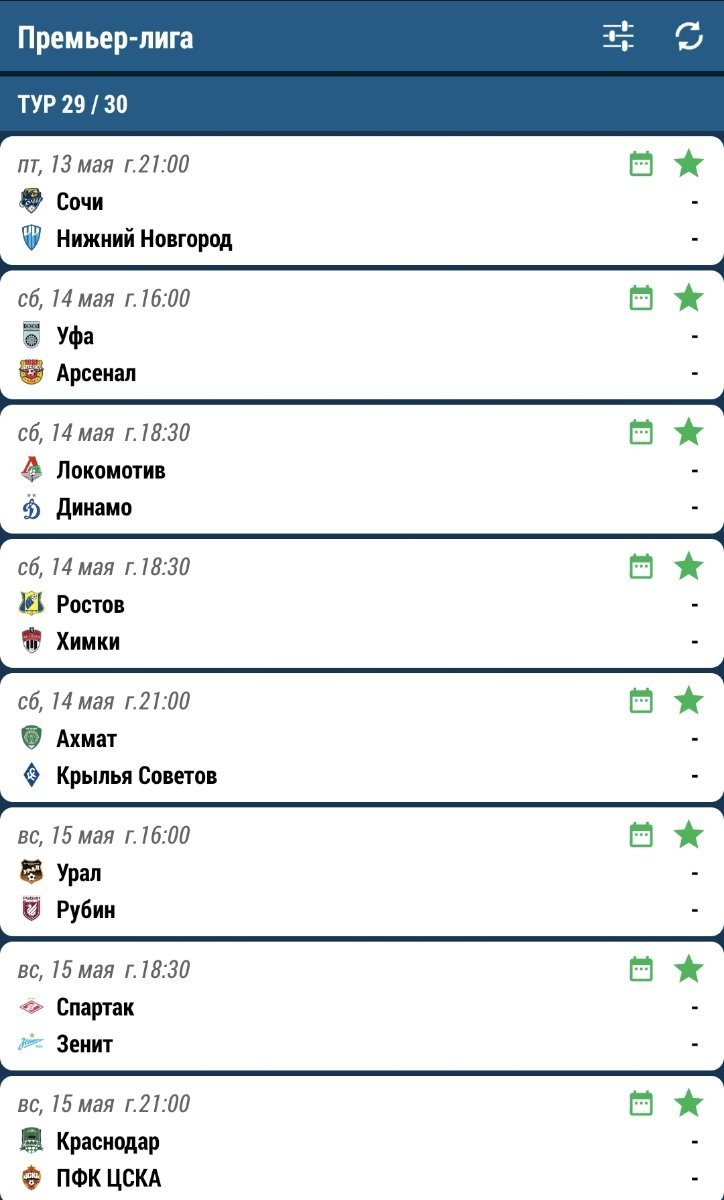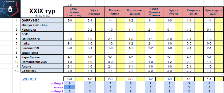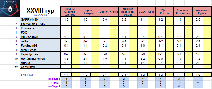 29 тур стартует 13 мая, прогнозы на 29 и 30 туры открыты) не опаздывайте!