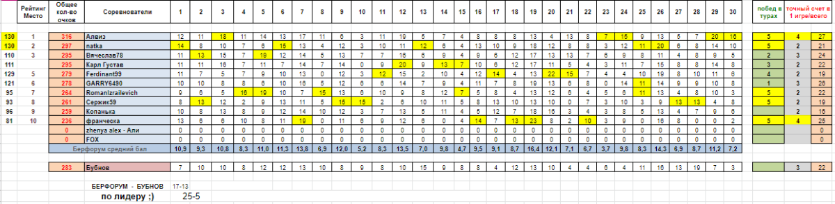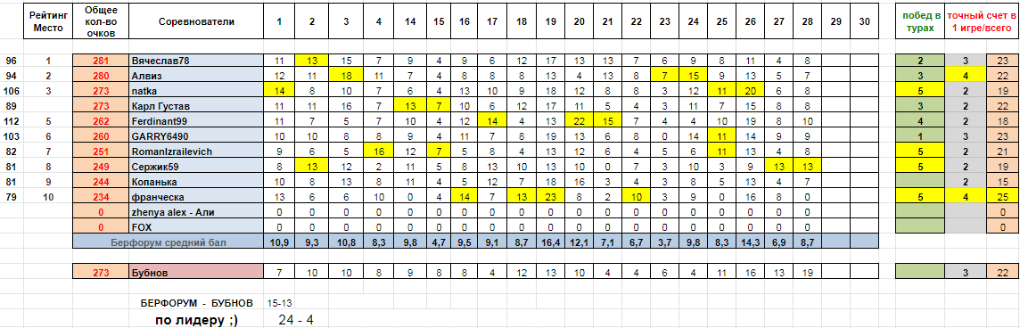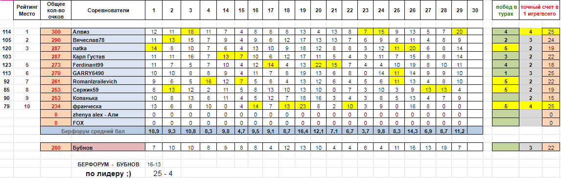 а вот и итоги 19 тура!