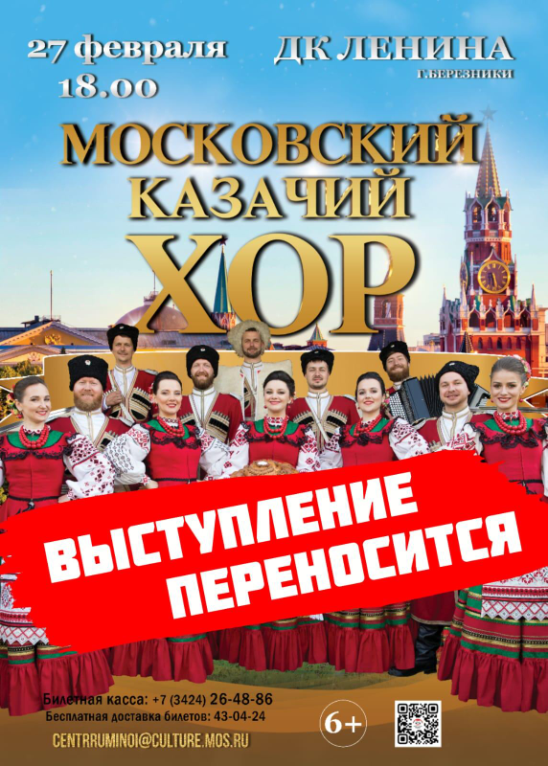 КУЗЬМИ4 Опубликовано 16 января, 2022 Опубликовано 16 января, 2022 МОСКОВСКИЙ КАЗАЧИЙ ХОР. Московский Казачий Хор лауреат международных, всероссийских конкурсов и фестивалей, заслуживший признание, как в России, так и за её пределами. Коллектив, обладающий уникальным характером и звучанием, исполнительский стиль которого, сочетает в себе традиционное хоровое казачье пение, хореографию и качественное инструментальное сопровождение. Выступление коллектива это зажигательное и необыкновенно яркое действо с традиционными и постановочными танцевальными номерами, элементами боя, трюками с казачьими шашками. Концертная программа Московского Казачьего Хора позволяет зрителю окунуться в глубину традиций казачьего народа в его песни, быт и культуру, тем самым прикоснуться к многогранной и богатейшей истории России. 27 февраля в 18.00 на сцене ДК Ленина. Заказ билетов (от 800 до 1400 руб.) по тел. 26-48-86 КОЛИЧЕСТВО МЕСТ В ЗАЛЕ ОГРАНИЧЕННО.