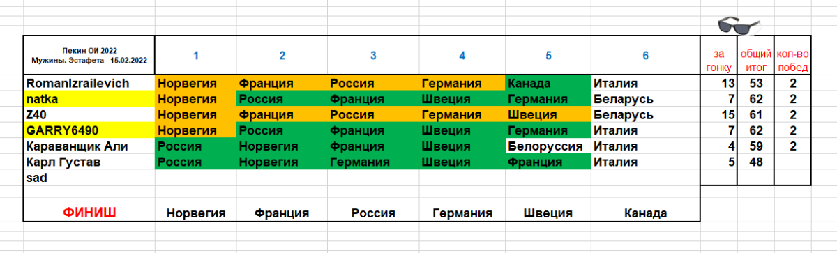 GARRY6490 Опубликовано 15 февраля, 2022 Автор Опубликовано 15 февраля, 2022 Норвегия - Россия - Франция - Швеция - Германия - Италия