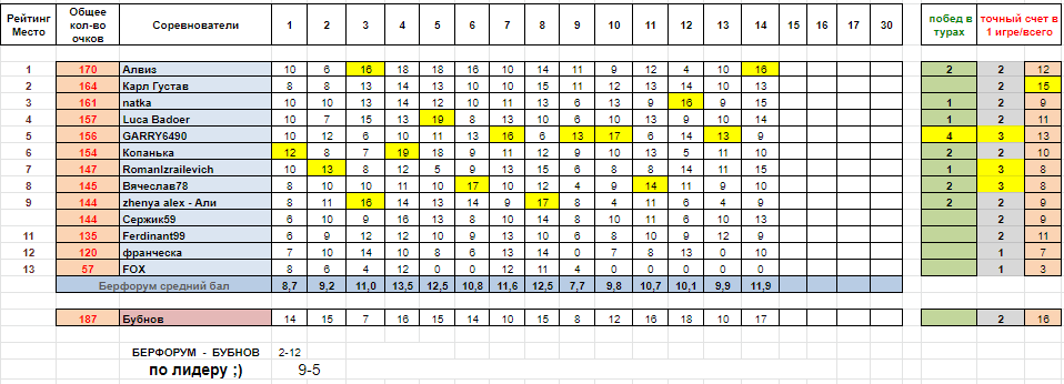 natka Опубликовано 24 октября, 2022 Опубликовано 24 октября, 2022 я решила не ждать окончания))) что там, 7-0)) угадать такое нельзя победил в туре наш лидер Алвиз! Огромные поздравления!!! но борьба была упорной ! Рады и восхищены!!! все бубны точно у Бубнова, что-то нам с ним тяжко бороться в этом году... 15 тур стартует 28 октября, не забывайте!