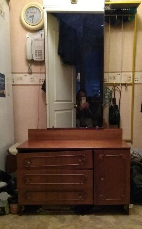 Наталья Бузанова Опубликовано 4 декабря, 2022 Опубликовано 4 декабря, 2022 Трюмо полированное, темно-коричневое, размер: зеркало 120*50, тумба 53*36*83,5, с одной стороны три выдвижных ящика, с другой - полка, цена 500 руб., отвечаю только на звонки: 8-922-641-88-29