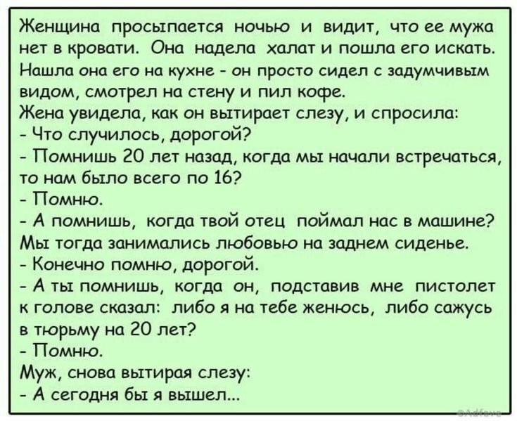 Техрук Опубликовано 13 сентября, 2024 Автор Опубликовано 13 сентября, 2024 Сын отказался от невесты. Горд за него! Не передать словами, как болело сердце представляя будущие такой семьи, которую он хотел построить с девушкой которая может принести только горе. - Нет, я никогда не влезал в отношения своего сына с девушками. Выбор только его. С моей стороны не больше совета. Я знаю эту тонкую грань, когда "ищут пару" родители. Я проходил через это сам в свое время. Предыстория. Я прекрасно знал Настю, мы жили в одном доме. Сын учился в одном классе с ней. С детства Настя обращала на себя внимание, единственная дочь в семье полковника генерального штаба, поздний ребёнок который не знала слово "нет" Можно сказать самая красивая девочка класса, училась прекрасно, велоспорт. Естественно сын, как и многие его друзья смотрели на Настю с обожанием. Кода дети ещё, Настя умела манипулировать, кокетничать. Но это детство. Потом вуз. Сын так же поступил на экономический, чтобы на одном факультете. Потом появились отношения, я лично не могу их назвать серьёзными. Потому, как вроде встречаются месяца три. Разругаются и в разные стороны. Сокурсник их Дима, неплохой парень, тоже за ней ухлестывал. Но так, не навязывался, но видно было, что неравнодушных к Насте. Потом мы с супругой отдали бабушкину квартиру, хороший район, две остановки до вуза. Да и взрослым сын стал, конечно хотел самостоятельности. Как-то незаметно и почти предсказуемо объявил - мы с Настей вместе поживём. Что сказать!? - Да ради бога, только родителей подруги в известность поставь! Да в принципе они так же знали моего сына с рождения, против не были. Наоборот, я с отцом Насти не один литр коньяка в гараже было выпитого. Хороший мужик, только позволял дочери многое. Но я не осуждаю, просто константирую факт. И пол года не прошло, сын говорит. Разругались, она к Димке ушла... - Как ушла, просто взяла и другому убежала? Сын говорит, устала от меня. А Димка прикольный говорит...Блин, детский сад какой-то! Я смолчал. А что говорить? Слов нет. Прошло месяца три, опять вместе. Я в шоке от таких отношений. Супруга в сердцах - может уже шведскую семью построите. Чего по посту туда-сюда бегать? Сын махнул рукой - разберёмся... Прошло пять лет после окончания вуза. А сожительская жизнь у сына и Насти на уровне приходящих и уходящих отношений. И Дима, как друг семьи. Неделю назад приходят к нам сын с Настей. - Родители, мы подали заявление в ЗАГС. Скоро свадьба. Вы там сами порешайте с родителями Насти, что да как. Сын говорит, пол ляма отложил на свадьбу... Честно, упились с супругой в хлам. Всю ночь проговорили за рюмкой. Понимали, но не получится у них семьи. Нахрен ему это "семейное" приключение?! Но смирились. Раз так вышло, так и должно быть... Дней пять прошло после визита. Приходит сын. Я никогда его таким не видел. Очень взрослый показался. Криво так улыбается, говорит. - Свадьба батя отменяется. Уже окончательно! - Что так, спрашиваю...? - Да просто всё. Оказывается Насте предложение и Дима сделал. Она выбирает... У меня круглые глаза, я нехрена не понимаю. Зову супругу расшифровать... Оказывается, Настя с подругами обсуждает за кого лучше замуж выйти, за Диму или за сына. И не просто обсуждает, ещё в социальных сетях вопрос подняла? Что это - дебелизм, кокетство на уровне идиотии? Вроде заявление уже подали? Сын так и сказал ей - а как же заявле