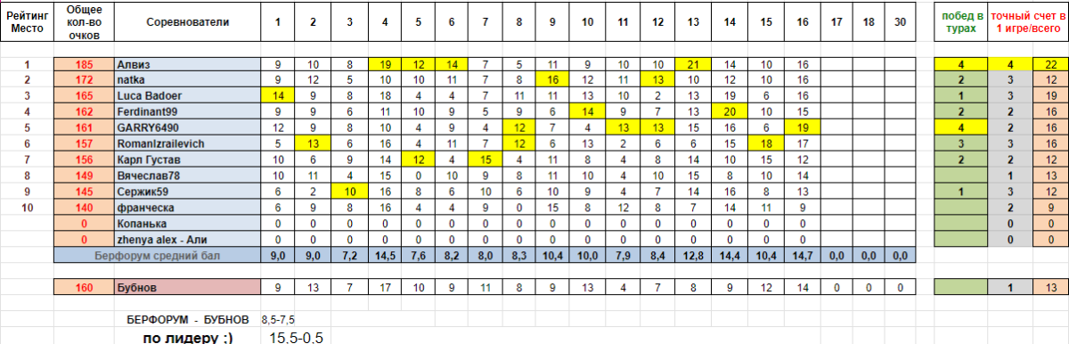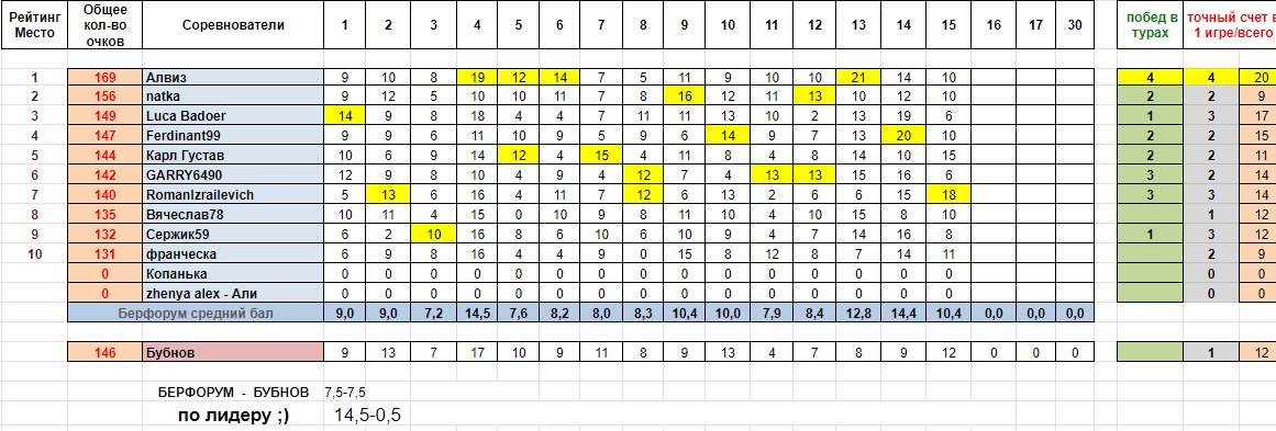 12 Сержик59 1-1   0-1   3-1   2-1   2-0   1-1   1-2   2-1   0 0