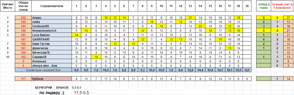 огромное спасибо всем за игру!!! а у нас 2 победителя! Алвиз и RomanIzrailevich! тур был жаркий! мы вами гордимся!
