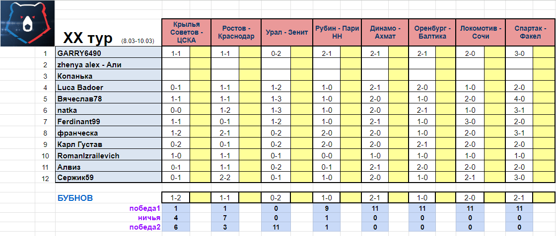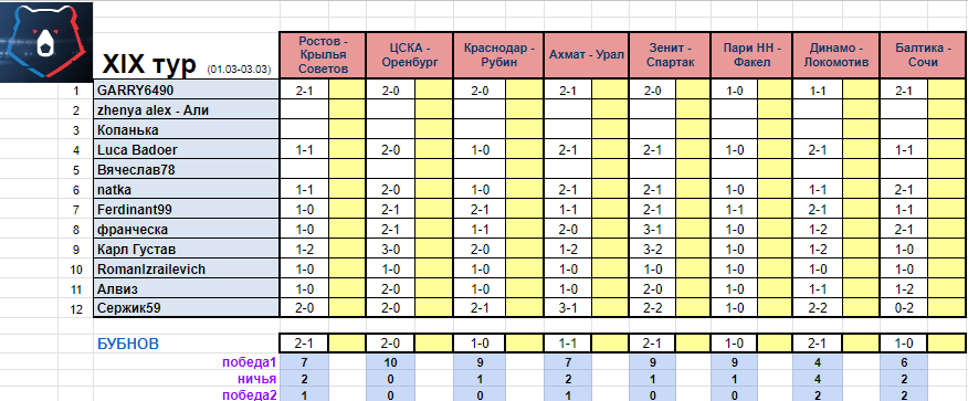 Бубнова так и нет...а мы все в сборе) да, 21 тур перенесён на апрель, 22 тур в районе 31 марта, так что немножко отдохнём)