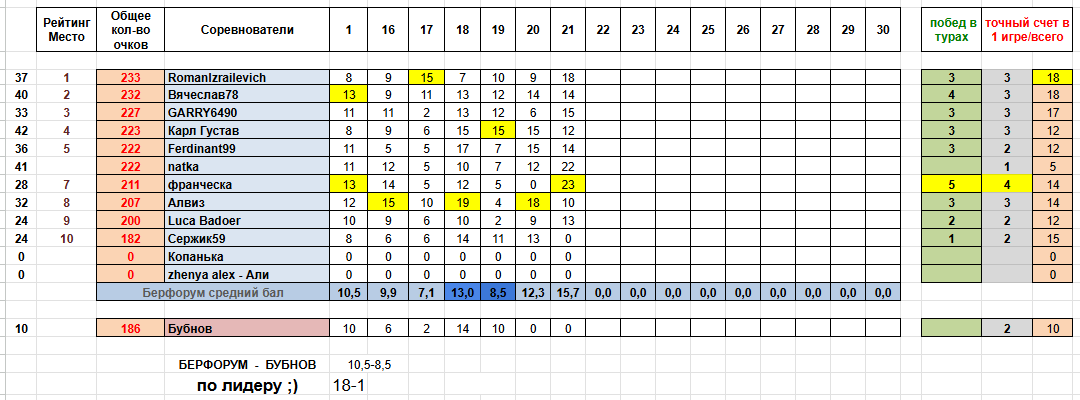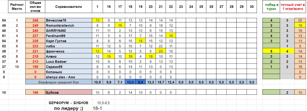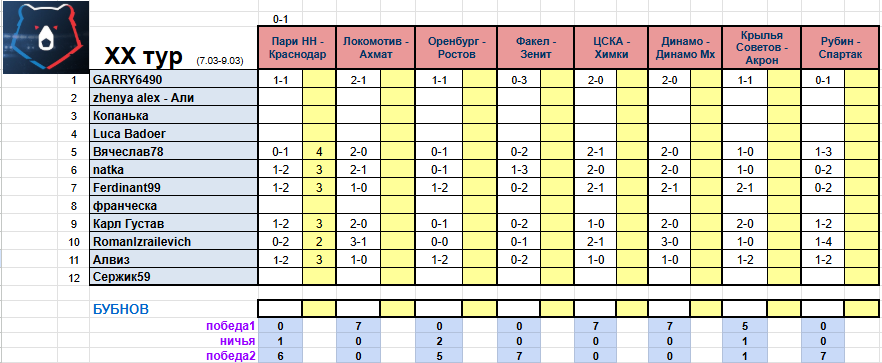 небольшой перерыв и старт 22 тура 28 марта! прогноз открыт!